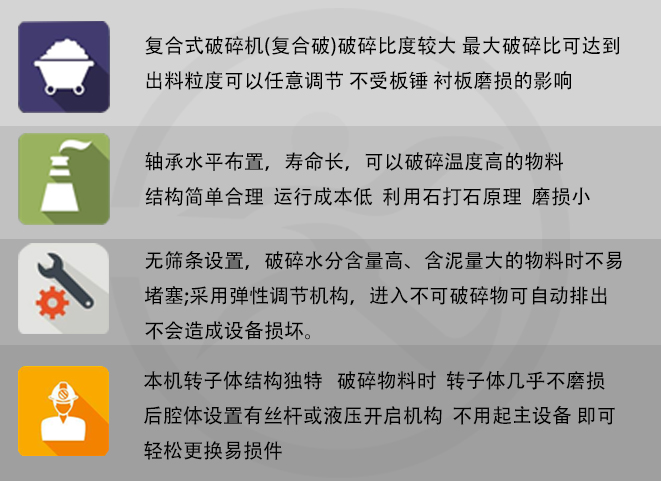 立式复合破碎机主要用途:复合式破碎(复合破)机系列适用于建材、矿业、冶金、化工工业破碎石灰石、熟料、煤及其它矿石,其抗压强度不超过140兆帕湿度不大于15%。