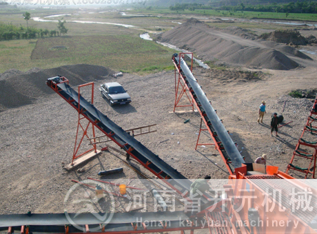 胶带输送机也可以叫做皮带输送机、带式输送机,我公司生产的胶带输送机广泛应用于选矿行业物料的输送,对于选矿工艺生产线来说,一般胶带输送机都要视客户现场情况订做。胶带输送机技术结构简单,易于维修,常常被用来做各种选厂的输送设备。