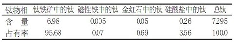 原矿的主要化学成分分析结果见表1,钛物相分析结果见表2。